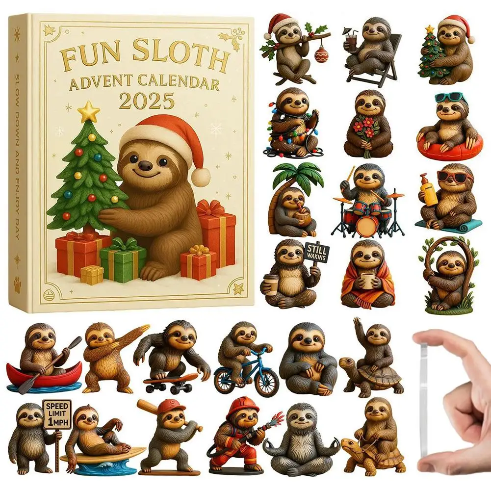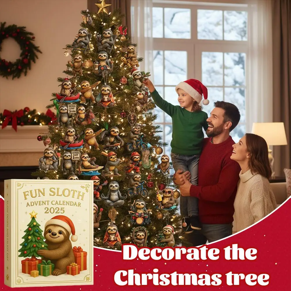 24 Days Holiday Sloth Countdown Ornament For Christmas Tree