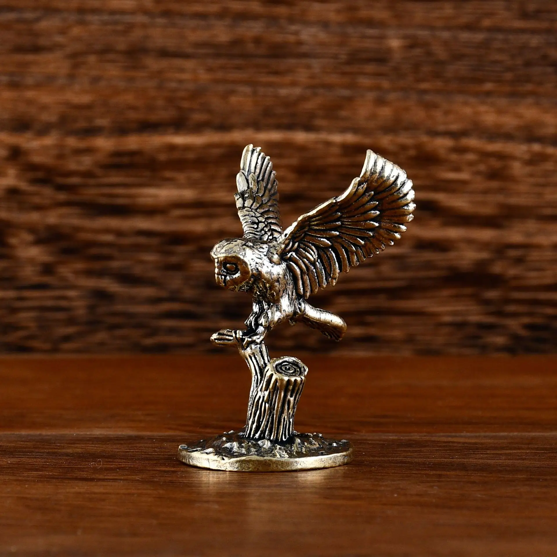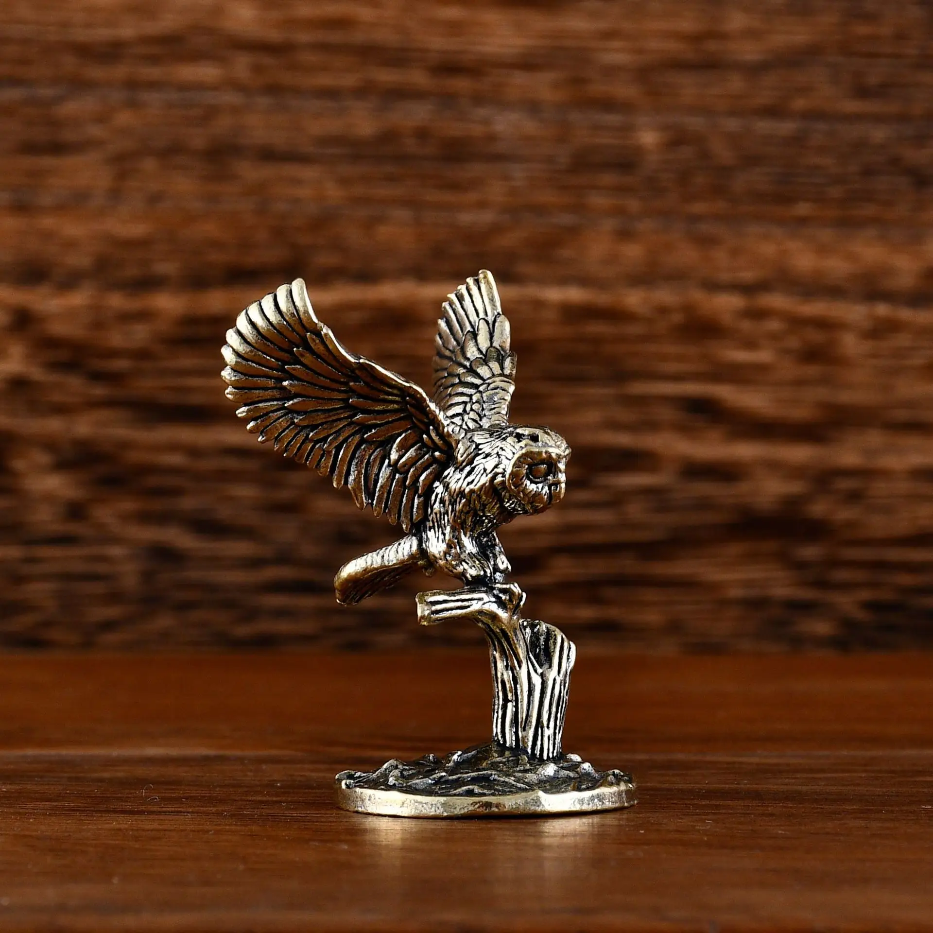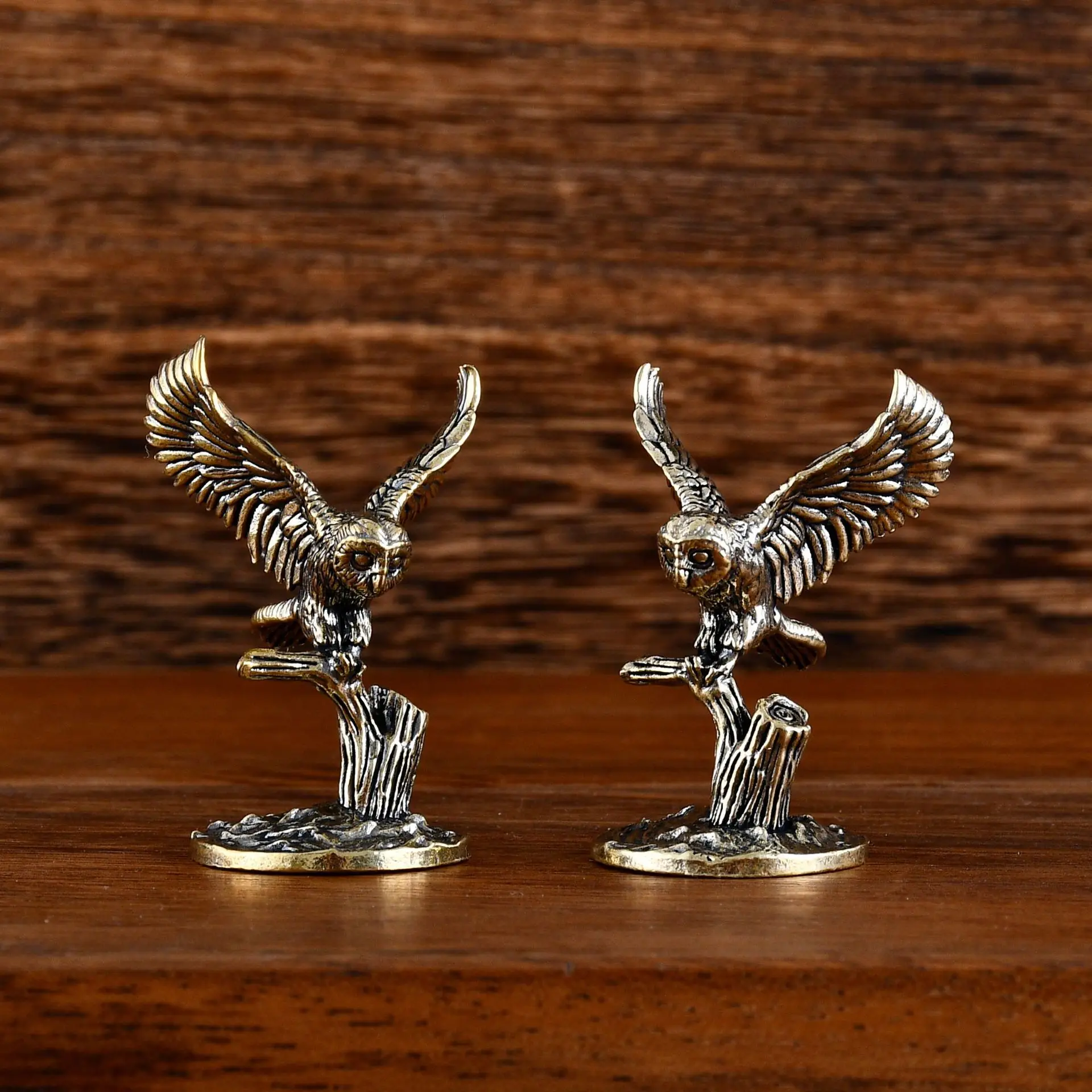 Owl Miniature Figurines Retro Copper Desktop Ornament
